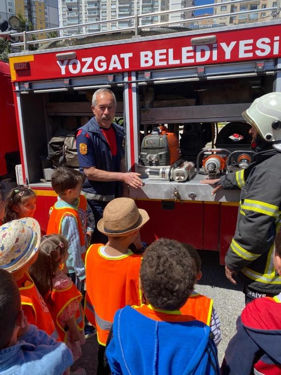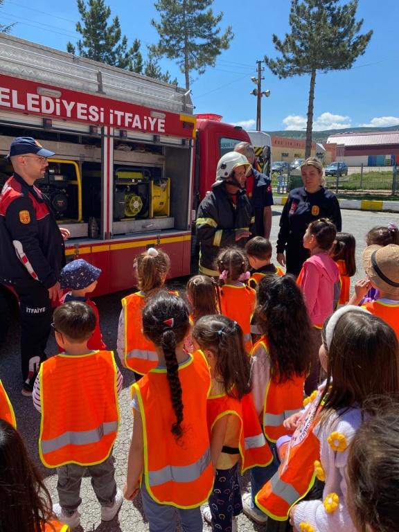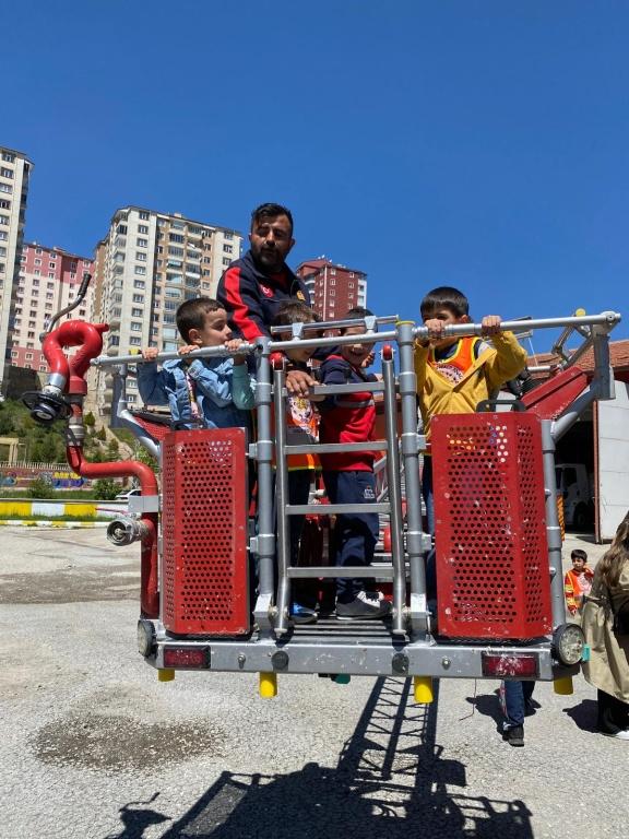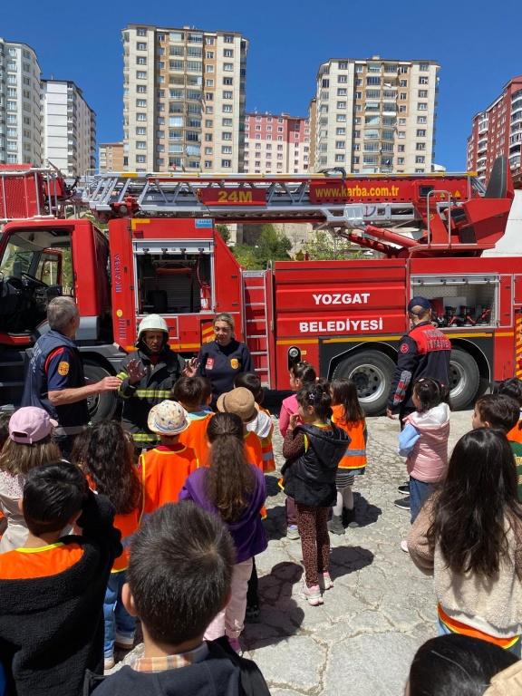 Öğrencilerimiz, itfaiyecilerin günlük hayatını yakından tanıma fırsatı bulurken, yangın güvenliği konusunda da önemli bilgiler edindiler.Gezide, itfaiye araçlarını inceleme şansı yakalayan öğrenciler, yangın söndürme ekipmanlarını ve kurtarma operasyonlarında kullanılan teknolojileri görme fırsatı buldular.Emekleri ve ilgileri için Yozgat Belediyesi İtfaiye Müdürlüğü ekiplerine teşekkür ederiz.